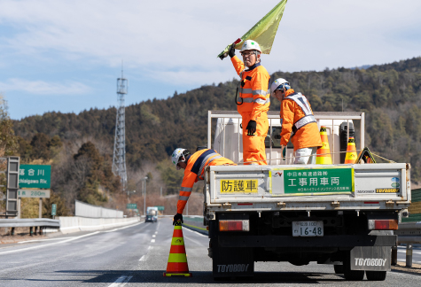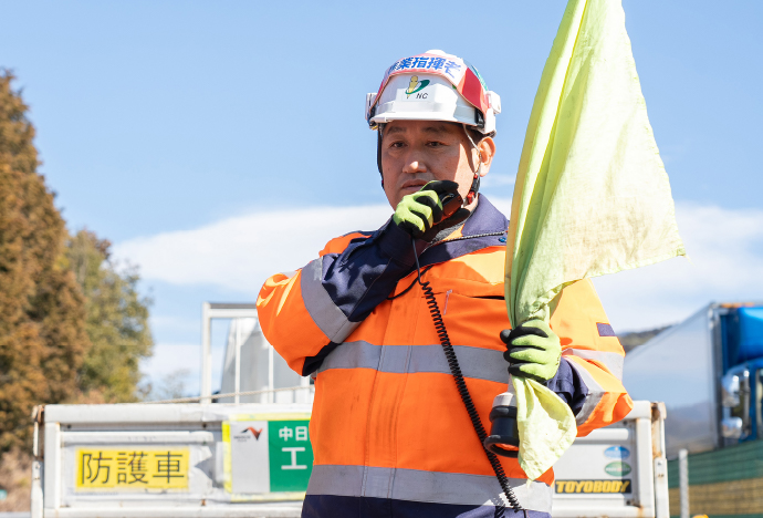 高速道路でおこなわれる各種工事に伴う、規制作業や交通誘導などの保安業務をメインにおこないます。交通や物流に欠かせない高速道路。その安全を守る職種の一つとして、やりがいも大きい仕事です。
